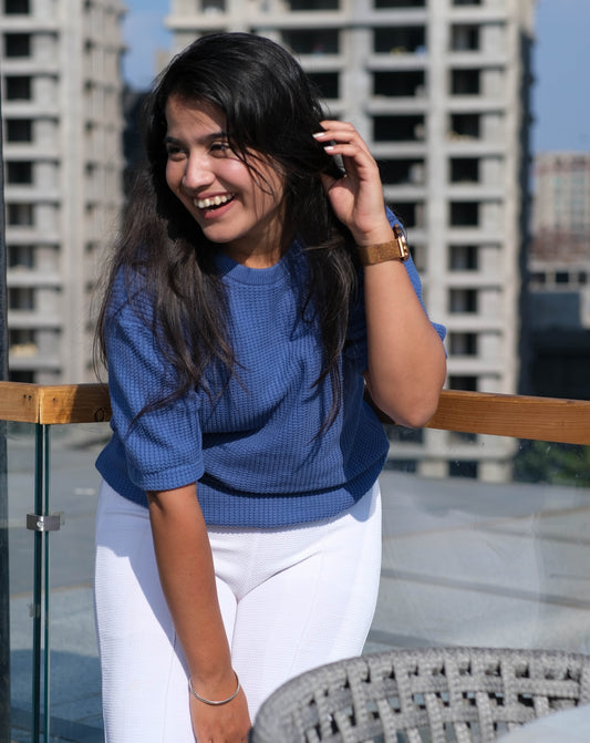 Waffle T Shirt | Blue | Regular | Kaam Bhari