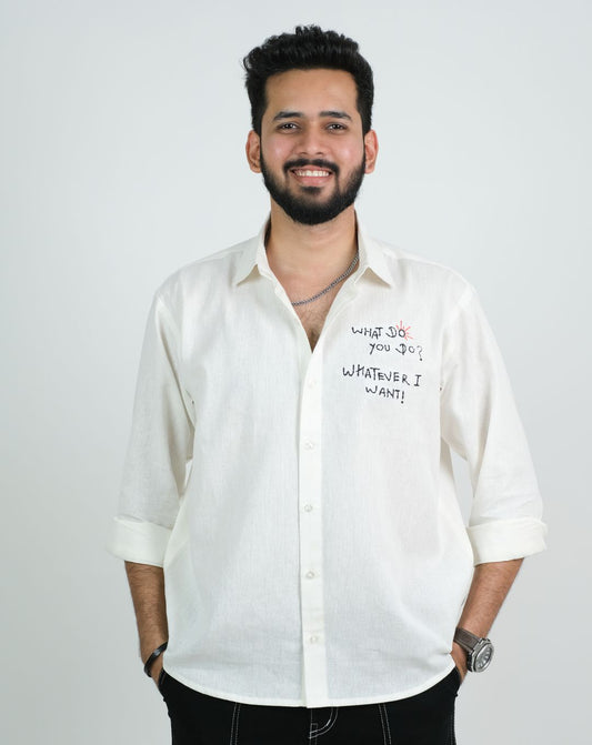 What Do You Do | Oversize Shirt | White | Unisex | Linen