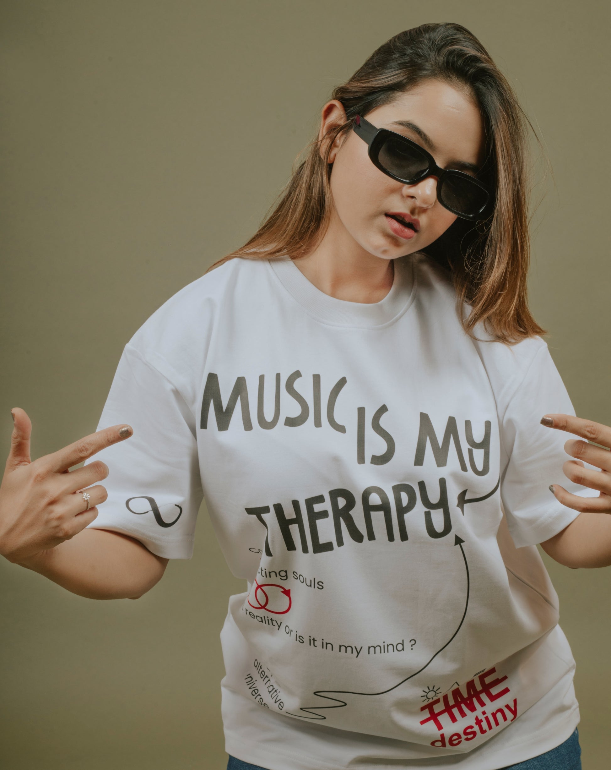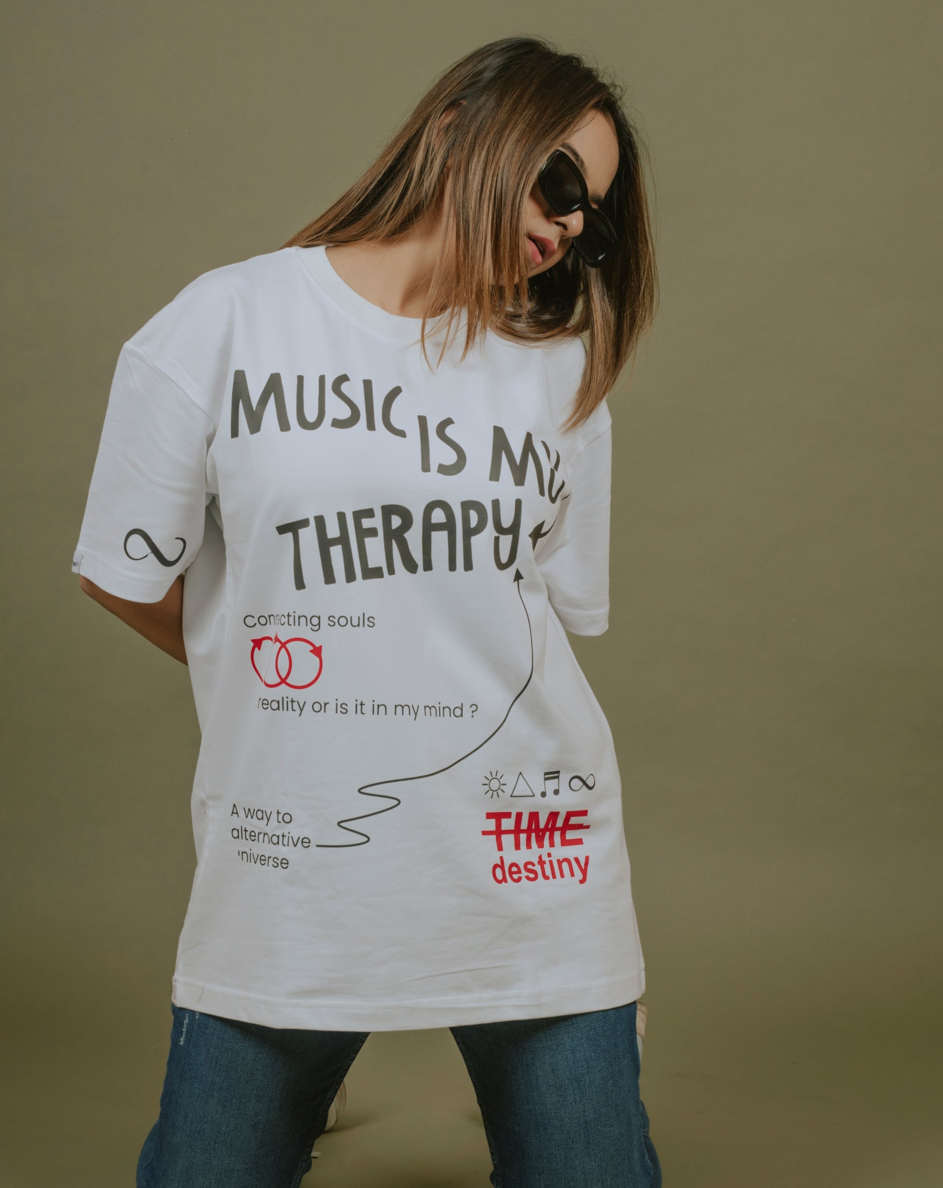 Music Is My Therapy | Over Sized T-Shirt | White | DJ Kiara