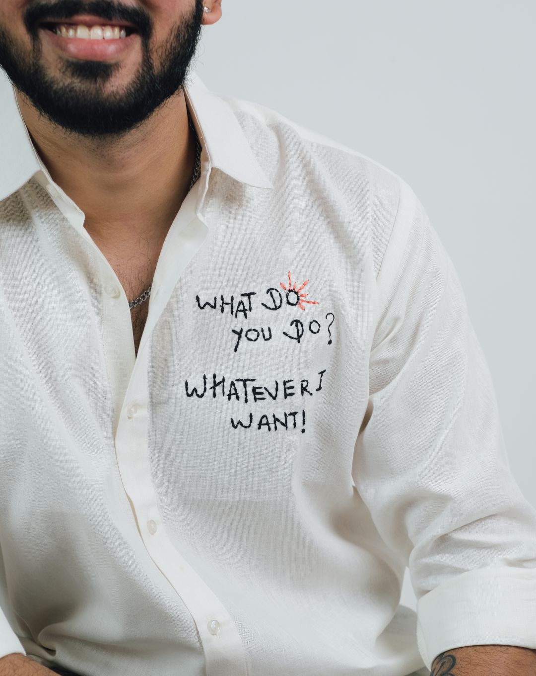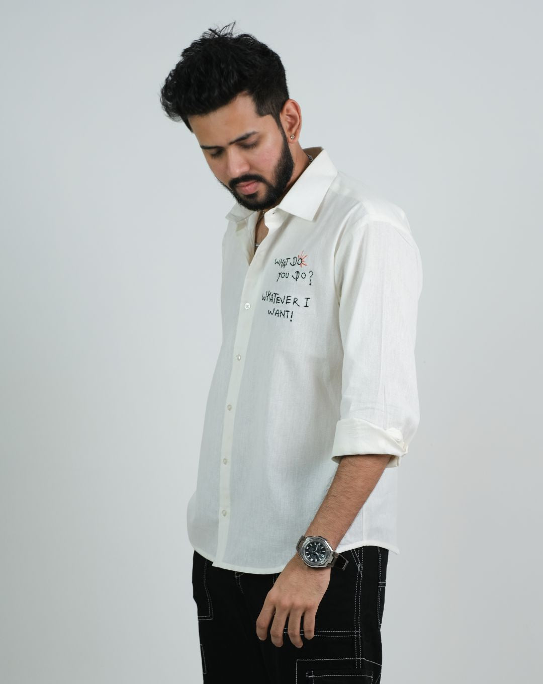 What Do You Do | Oversize Shirt | White | Unisex | Linen